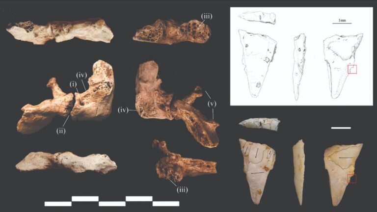 اما اصل قضیه از اینجا جالبتر میشه! کنار همون دندهی عفونی، دانشمندها یه تیکه سنگ کوارتز پیدا کردن، خیلی ریز و مثلثی شکل – یه چیزی شبیه نوک تیر یا arrowhead. خود دانشمندها بهش میگن micropoint، یعنی یه خرده سنگ نوکتیز کوچیک، که فقط ۱۸ میلیمتر (یعنی کمتر از ۲ سانت) طولش بوده و روش هم نشونههایی از بریدگی پیدا کردن که معمولاً برای نصب شدن به بدنهی تیر یا نیزه درست میشده.