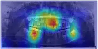 برای اینکه مطمئن بشن مدل واقعاً چیز درست رو بررسی میکنه، از یه تکنیک به اسم Grad-CAM استفاده کردن. Grad-CAM یعنی یه نوع نقشه حرارتی که نشون میده مدل موقع تصمیمگیری رو کدوم قسمت عکس تمرکز کرده. (یعنی واسه کسایی که میترسن هوش مصنوعی تصمیمگیریش نامفهوم باشه، این تکنیک نشون میده که AI دقیقاً به ریشه دندون و رویش دندون آسیا، یعنی نقاط تخصصی مهم، دقت میکنه).