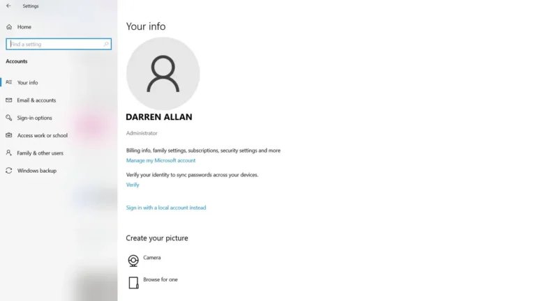 اولین و اصلیترین کار اینه که وارد ویندوزت با حساب مایکروسافت بشی، نه حساب لوکال. اگر حساب مایکروسافت نداری، باید بسازی و بعدش تو مسیر Settings > Accounts > Your info عوضش کنی.