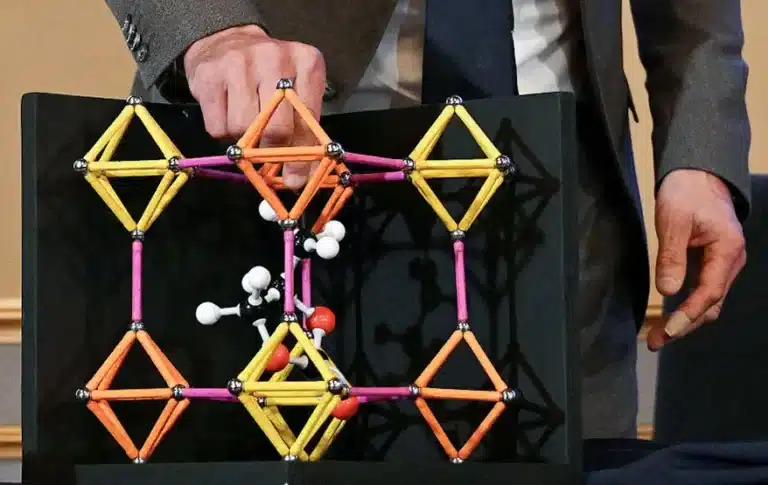 عمر یاغی پس از سالها تلاش، با بورسیه به آمریکا رفت و بعدش دیگه استاد هاروارد شد! تو سال ۲۰۲۵ ( بله آینده نزدیک!) با دو نفر دیگه برنده جایزه نوبل شیمی شد، چون تونستن یه چیز باحال به اسم “چارچوب آلیفلزی” یا MOF اختراع کنن. MOF یعنی ساختارهایی که از یونهای فلزی و مولکولهای آلی درست میشن و میتونن شبیه اسفنج مقدار زیادی مولکولهای مختلف (مثلاً گازهای آلاینده یا حتی آب) رو جَذب کنن و بعد آزاد کنن. وقتی میگیم یه گرم از این MOFها تا ۷۰۰۰ متر مربع سطح داخلی دارن، یعنی واقعاً اسفنج مولکولی حسابی هستن!