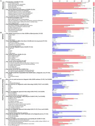 این محققها (که اسماشون زیاد مهم نیست خود مقاله گفته: Zichen Ye و همکاراش) اومدن یه نظرسنجی آنلاین بزرگ راه انداختن و از 224 تا پاتولوژیست تو همه جای کشورشون پرسیدن که چقدر با این هوش مصنوعی آشنان، نظرشون چیه و اصلاً حاضرن استفاده کنن یا نه. سوالا تو پنج درجه بودن؛ مثلاً از اصلاً تا کاملاً موافقم (این رو بهش میگن مقیاس لیکرت – یعنی همون سنجش با چند تا انتخاب از خیلی مخالف تا خیلی موافق).