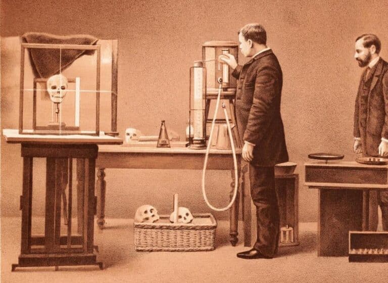 حالا بیاید یه کم درباره اون علم عجیب حرف بزنیم. اون موقعها علم جمجمهشناسی یا همون “کراینومتری” (Craniometry) خیلی رو بورس بود. این علم یعنی: بچهها جمجمه هر کسی رو با خطکش و ابزارهای مختلف اندازه میگیرن و بعد طبق اون عدد و رقمها سعی میکنن بگن آدمها از چه نژادی هستن یا چه خصوصیات ذهنی دارن. مثلاً میگفتن اگه جمجمهات این شکلی باشه، باهوشی، یا اگه اونجوری باشه، فلان خصلت رو داری! البته الان دانشمندهامون کاملاً ثابت کردن که اینا همهاش خرافه بوده و اندازه یا شکل سر هیچ ربطی به هوش و رفتار نداره. اما اون موقع این حرفا رو خیلی جدی میگرفتن و براش کلی آمار و شماره درمیآوردن. کلاً اون موقع عدد و رقم خیلی براشون باکلاس بود!