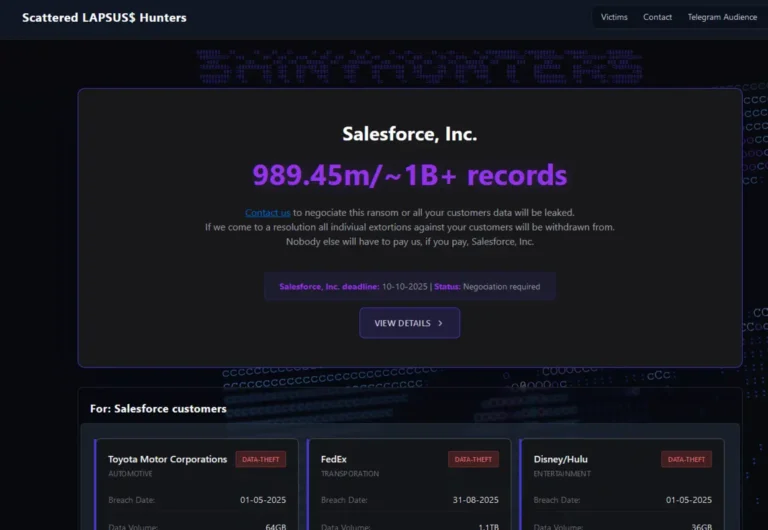 سال ۲۰۲۵ این گروه یه کمپین عجیب راه انداخت به اسم “مهندسی اجتماعی” – یعنی با ترفند و حرف، ملت رو گول می‌زنن تا دسترسی بدن. مثلاً قربانی رو با تماس تلفنی قانع می‌کردن که یه اپ مشکوک رو به Salesforce سازمانش وصل کنه. همین باعث شد اطلاعات کلی شرکت بزرگ مثل تویوتا، فدکس، دیزنی/هولو و UPS رو بدزدن و تهدید کنن اگه پول ندن، همه‌ اطلاعات داخلی‌شون رو افشا می‌کنن. این روش همون اخاذی سایبریه.