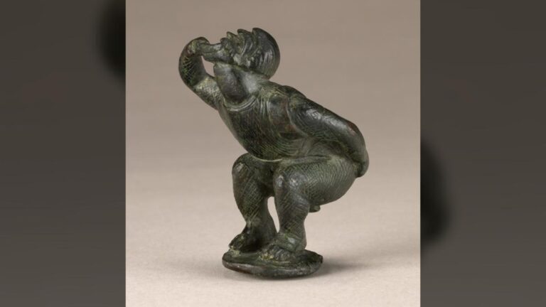 این مجسمه از جنس برنز ساخته شده و فقط ۶ سانتیمتر قد داره! یعنی اندازه یه انگشت کوچیک. الان تو مجموعه موزه J. Paul Getty تو کالیفرنیا نگهداری میشه. بر اساس سبک و مدلش، احتمالاً بین سالهای میلادی ۱ تا ۱۲۵ (دقیقاً همون دورانی که امپراتوری روم تو اوج بود) ساخته شده.