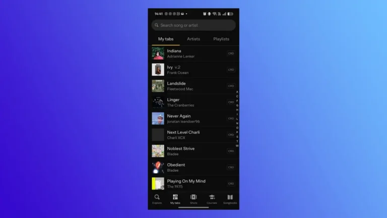 یه نکته خفن اینه که واقعاً تعداد آهنگاش حیرت‌انگیزه! هرچی آهنگ قدیمی و جدید — از Fleetwood Mac و John Martyn گرفته تا گروه‌های مدرن‌تری مثل The 1975 و Big Thief — همه رو میشه توش پیدا کرد. حتی خودم آهنگ‌های خاص‌تری از Frank Ocean، Sampha یا Charli XCX رو هم راحت پیدا کردم. چون دیتابیس این اپ بیشترش رو کاربرا خودشون پر کردن، هر آهنگی رو یکی پیدا کنه و تبلچرش رو بزنه، همون موقع تو اپ موجود میشه.