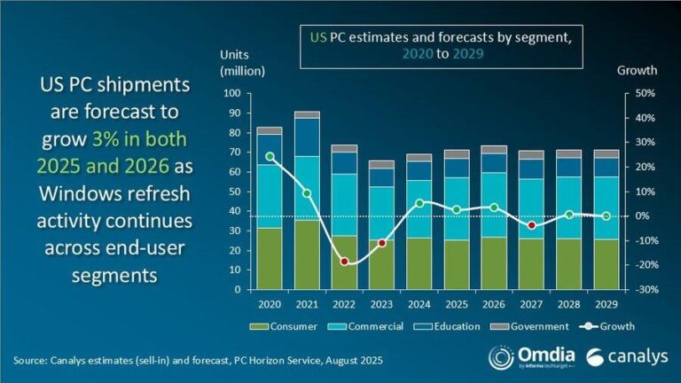 خب رفقا بیاید یه نگاهی بندازیم به وضعیت بازار کامپیوتر تو آمریکا و ببینیم چه خبر شده! تو سه ماهه دوم سال ۲۰۲۵، فروش کامپیوترهای شخصی (همون PC که منظورش لپتاپ و دسکتاپه و تبلت رو حساب نمیکنن) یه کوچولو اُفت داشت. طبق گزارش شرکت Canalys که از معروفای تحلیل بازاره، حدود ۱۸.۶ میلیون دستگاه تو این مدت فروخته شده و این یعنی ۱.۴ درصد کمتر از سال قبل. البته این اُفت خیلی عجیب نبود چون شرکتا میخواستن انباراشون رو سبک کنن و جنسهایی که اول سال خریده بودن رو رد کنن، تا گیر تعرفههای جدید نیفتن.